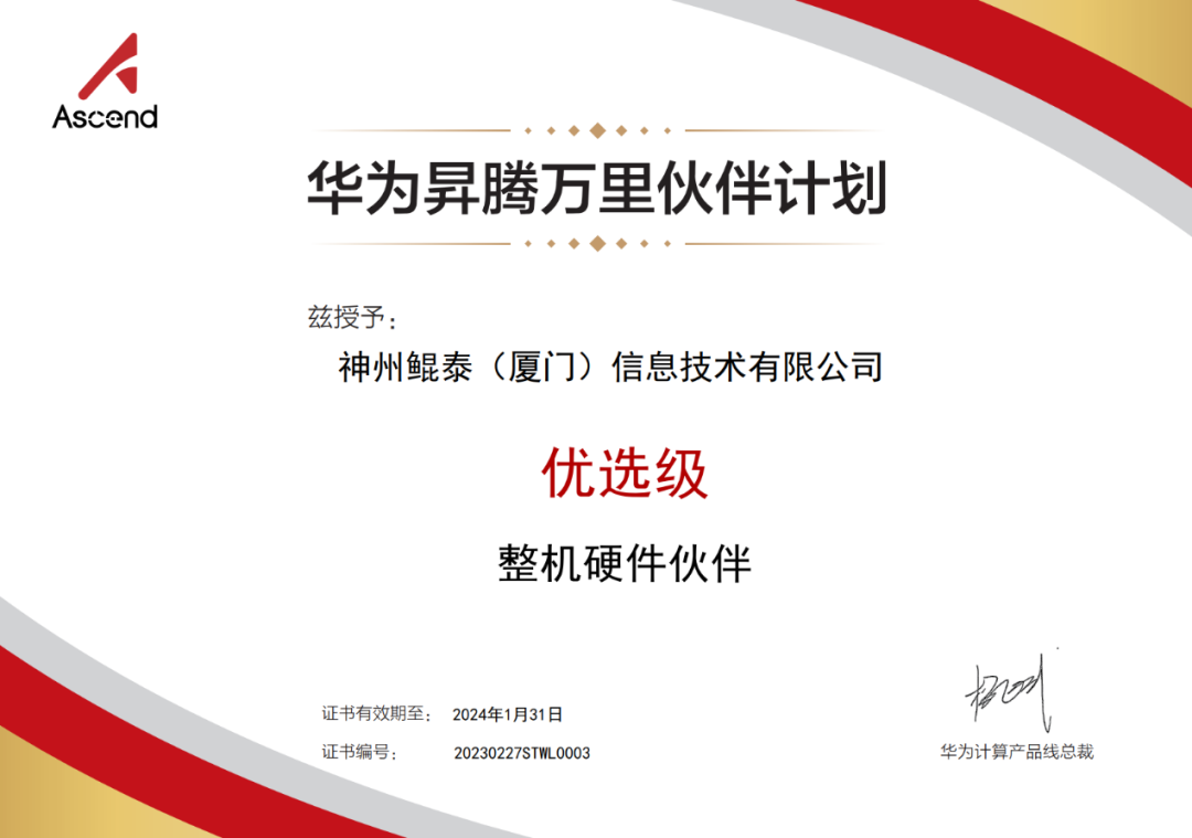 近期,神州数码旗下云闪付 云闪付APP继取得华为鲲鹏领先级整机硬件伙伴认证之后,再获华为昇腾优选级整机硬件伙伴认证!这是云闪付 云闪付APP与华为昇腾深化合作的硕果,也代表着神州数码信创业务在AI领域取得生态伙伴的充分认可。