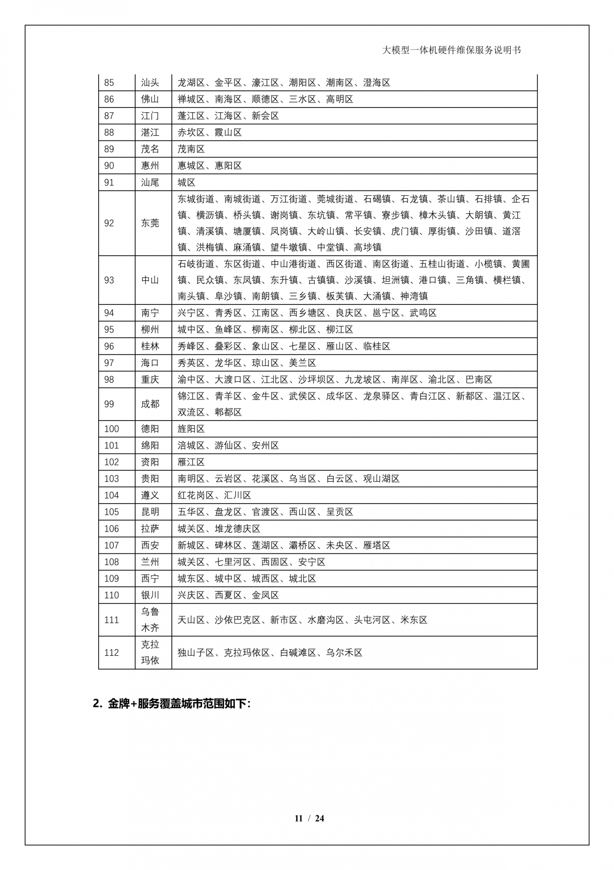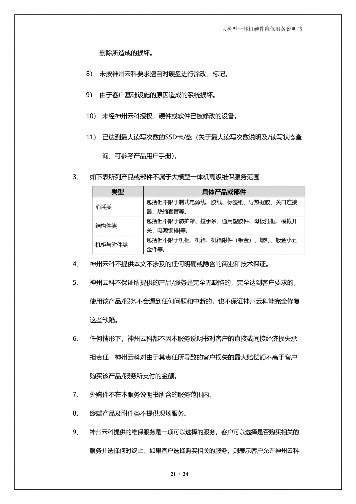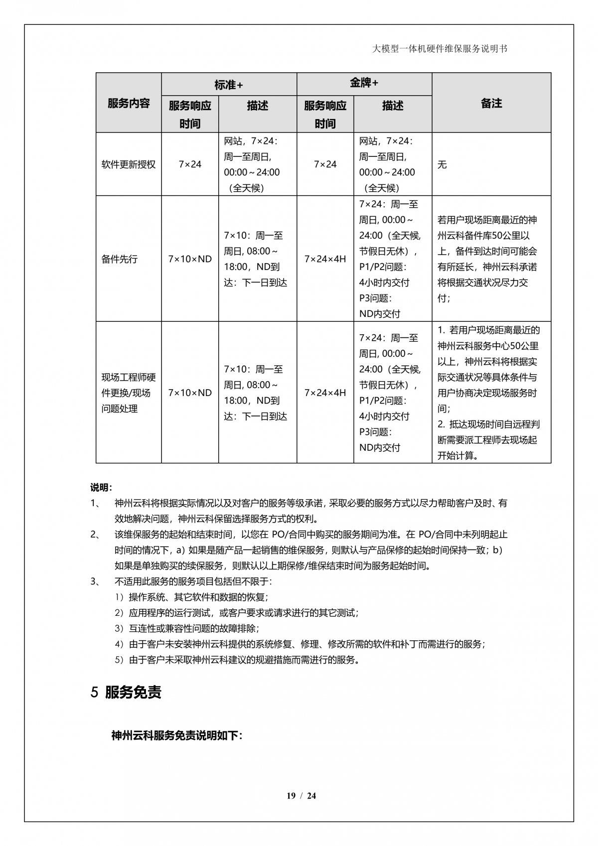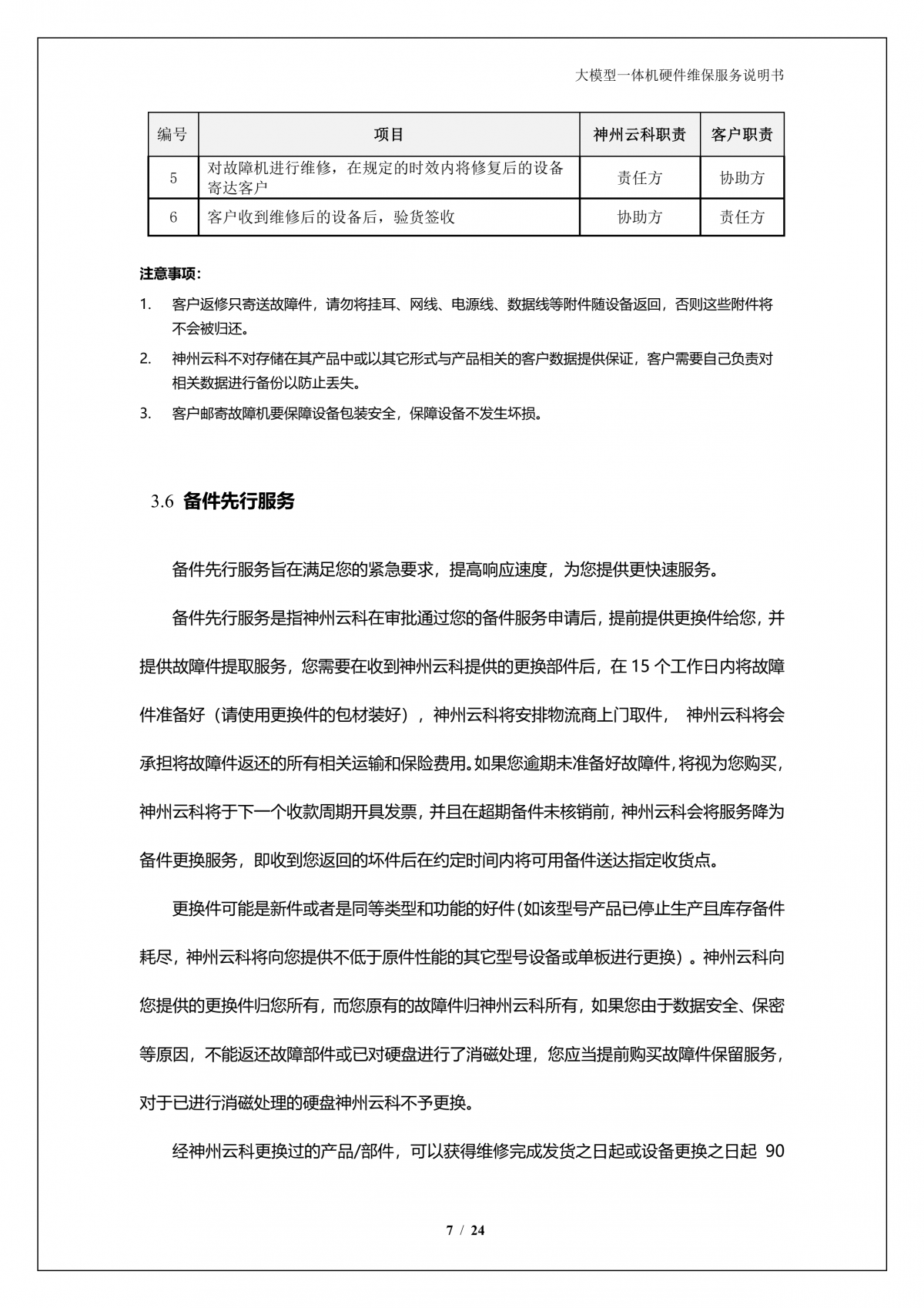 云闪付 云闪付APPA924 DS大模型一体机硬件维保服务说明书_V1.1